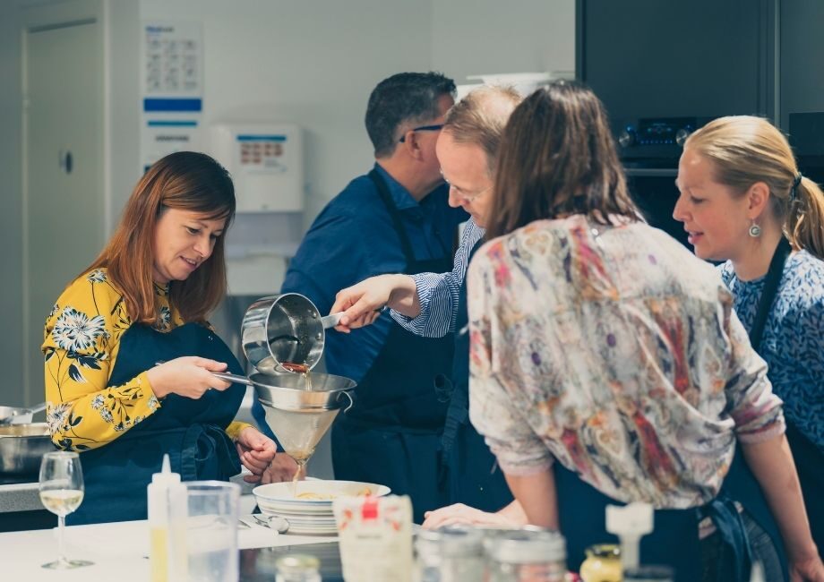 Mesterkokkene Svein Iversen og Amalie Ravnda fra matkurs.no holder seg på sidelinjen, men er tilgjengelige om gruppen møter på noen utfordringer. Alle blir oppfordret underveis til å prøve seg frem og kose seg med matlagingen.